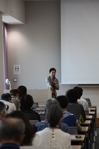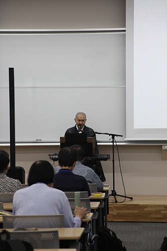 午前の講義を御担当頂いた佐々木先生は、「空の教えを味わう」と題し、仏教において非常に重要な「空」ということについて、我々の日常にある考え方とも結びつけながら、わかりやすくご説明頂きました。