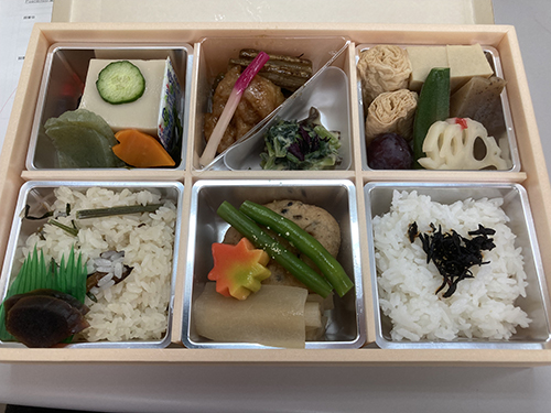 お昼は「精進料理を味わう」と題し、精進料理店「阿じろ」のお弁当を参加者全員でいただきました。